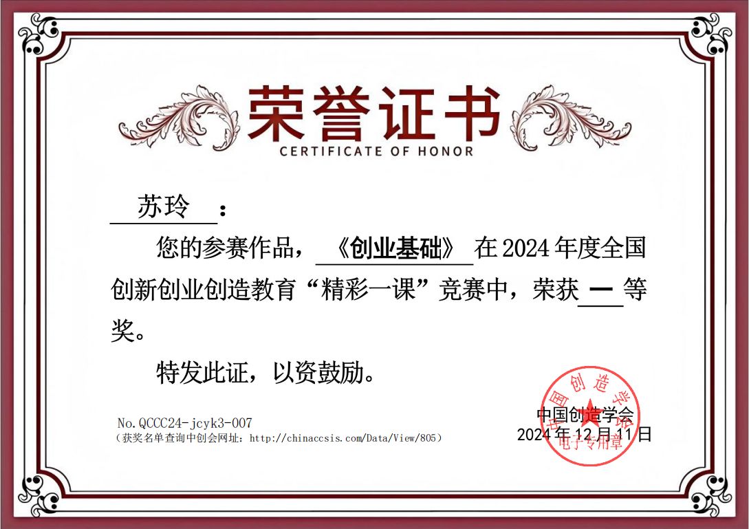 全国创新创业创造教育“精彩一课”竞赛由中国创造学会主办,中国创造学会创新创业创造专业委员会、中国创造学会创新转化分会、教育部创新创业课程群虚拟教研室(同济大学)、安徽工业大学教务处(教师教学发展中心)共同承办。该项赛事被列入了2024全国普通高校教师教学竞赛清单,并作为教学竞赛维度纳入2024版全国普通高校教师教学发展指数,旨在在进一步加强高校创新创业师资队伍建设,引导教师加强创新创业课程改革创新,提高课堂教学水平。本次比赛共有来自东南大学、东北大学、安徽工业大学等院校的92名教师参加,经过激烈比拼,beat365官网教师在教学理念、教学内容、教学组织、教学语言与教态、教学特色等方面获得专家评委们的好评。苏玲、门金瑞、刘会芳荣获一等奖,刘建丰荣获二等奖,孔佳利、生俊青、马安佳荣获三等奖。