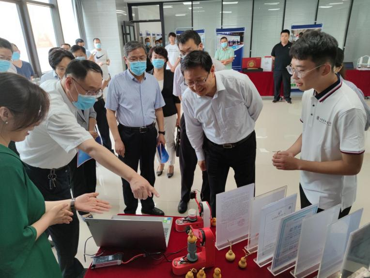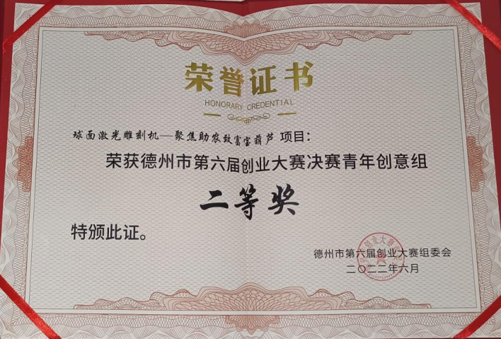 6月9日,德州市第六届创业大赛决赛在德州市人力资源市场主楼三楼会议室举行,经过激烈角逐,beat365官网《球面激光雕刻机—聚焦助农致富宝葫芦》项目以第二名的成绩获得青年创意组二等奖,《轴承自动维护保养一体机》项目以第4名的成绩获得三等奖。此外,德州市人民政府常务副市长与beat365官网学生亲切交谈并对获奖项目给予肯定。